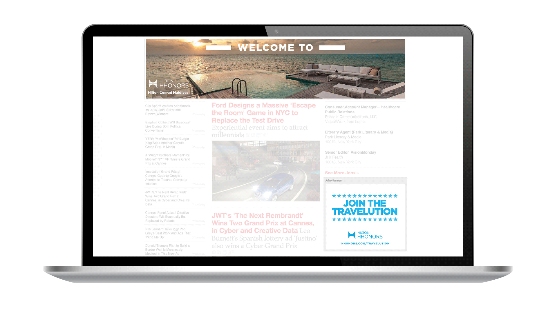 Hilton Honors wanted an acquisition campaign, a way to bring new members into the program while making the shift to using the app more attractive to current members. Enter the Travelution, a versatile campaign that not only fit the needs of what Hilton Honors was looking for but also served as a call-to-action and rallying cry, spurring brand interest in a myriad of ways.